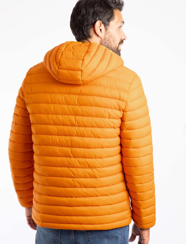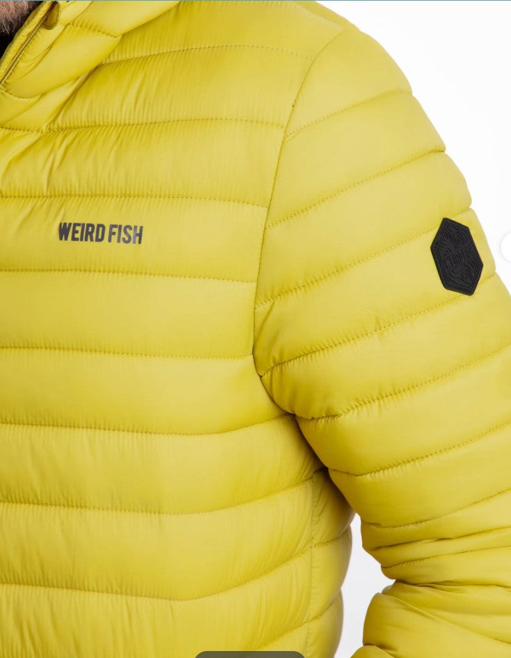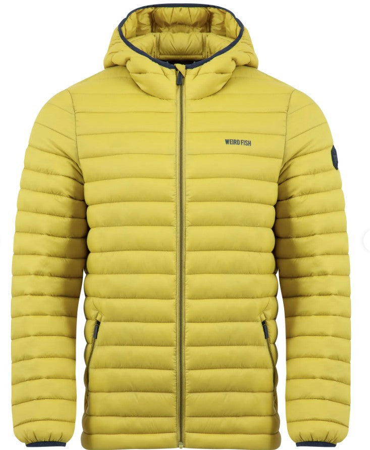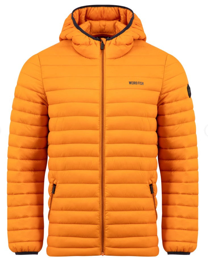 WEIRD FISH'S FLETE PADDED JACKET is a light weight but warm puffa style jacket wkith an attached hood. We have three collours available- desert orange outer with red lining; antique moss (lime green) with olive green lining & navy with dark red lining (no picture shown). The jacket has a full front zipper opening, horizontal wadding and 2 front slanted zipped pockets. Outer and lining are made from 100% polyamide. Made in China. Cool water wash at 20 degrees.