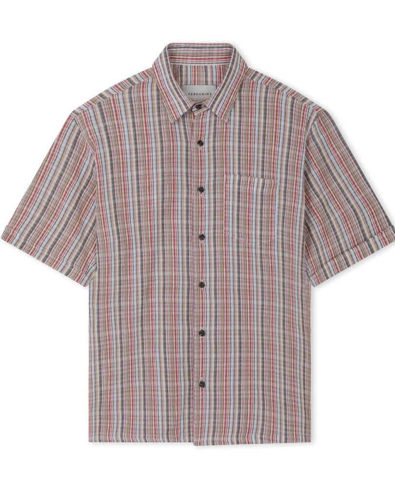 PEREGRINE'S BEACH SHORT SLEEVE SHIRT is a classically styled and relaxed shape shirt for the summer weather. We offer the shirt in two fabrics- the cream shirt has a vertical seersucker texture. The second "Candy Stripe" seersucker fabric has vertical, narrow pastel stripes in red, black. tan & blue, and featuring contrasting turtoise shell buttons down the front. Both shirts habe a pointed collar, breast pocket, button opening down the front. Made in Spain from 100% cotton. Machine wash at 30 degrees.